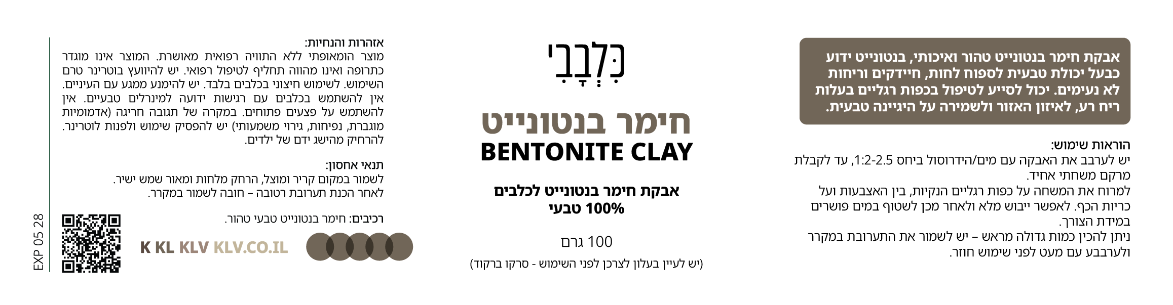 רכיבים: חימר בנטונייט טבעי